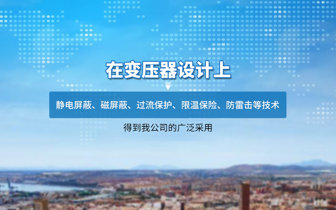 本公司憑借變壓器專(zhuān)業(yè)技術(shù)和設(shè)備優(yōu)勢(shì),致力于研制開(kāi)發(fā)和生產(chǎn)各類(lèi)高、新、精變壓器產(chǎn)品,在變壓器設(shè)計(jì)上廣泛采用靜電屏蔽、磁屏蔽、過(guò)流保護(hù)、限溫保險(xiǎn)、防雷擊等技術(shù),為我國(guó)航天工業(yè)、國(guó)防工業(yè)、醫(yī)療科技,設(shè)計(jì)生產(chǎn)一系列變壓器新產(chǎn)品。
